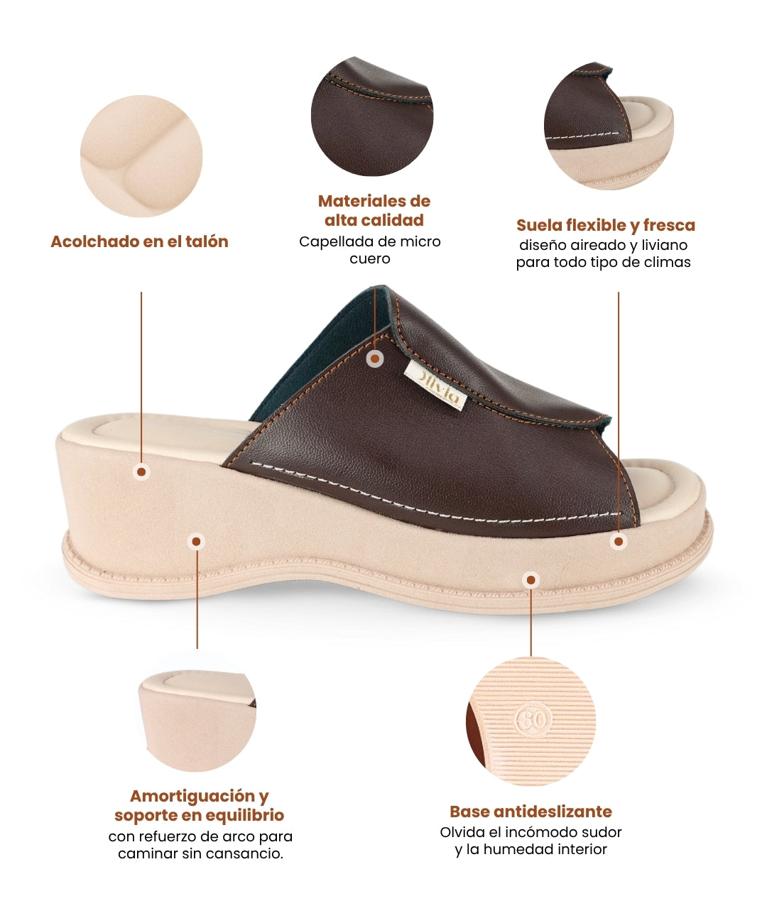 La Dra. Benites, Podóloga Certificada, recomienda Olivia por su plantilla ergonómica, suela flexible y soporte estable. Son sandalias que respetan el movimiento natural del pie y favorecen la salud a largo plazo, brindando comodidad y confianza en el día a día.